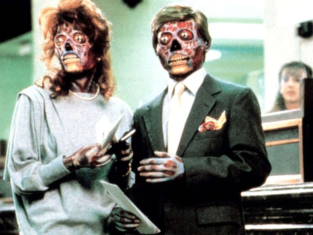 ‘They Live’ es una clara disección hacia la decadente sociedad estadounidense, que asentó un género de películas que no buscaban ocultar los numerosos errores cometidos por su país. No fue la primera película en ofrecer una crítica abierta hacia el gobierno o el sistema capitalista, pero destaca por su visión acida, visceral sobre el gobierno, ademas de sus toques de humor negro que pretenden parodiar alguna de las vivencias que muchos tienen que aguantar durante su día a día. La película destaca a la televisión como el principal elemento manipulador; una caja tonta, cuyos mensajes están al alcance de todas las clases sociales.